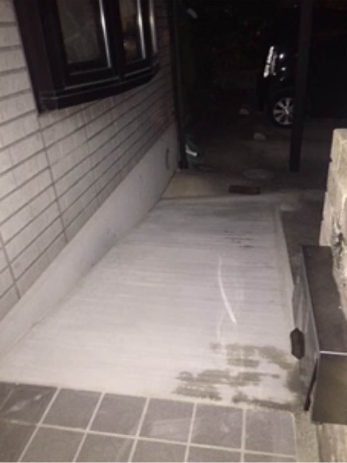| after | 段差部分にスロープを設置する事により急な段差をなくし、つまづかず転倒する事がなくなりました。 |