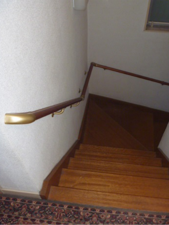 | after | 手すりを取り付ける事で身体を支える事が出来、安全に階段を昇降していただけるようになりました。 |