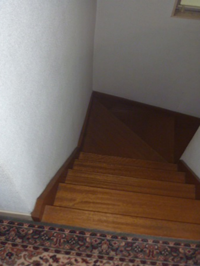| before | 階段に手すりが無く昇降をはって行っておられ身体的な負担も大きく転倒の危険性も高い状態でした。 |