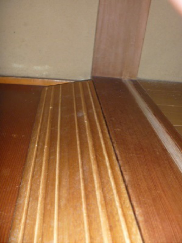 | before | 家主様は「すり足歩行」の為、敷居などのわずかな段差につまづいてしまい、これまで何度も転倒を経験されておりました。 |